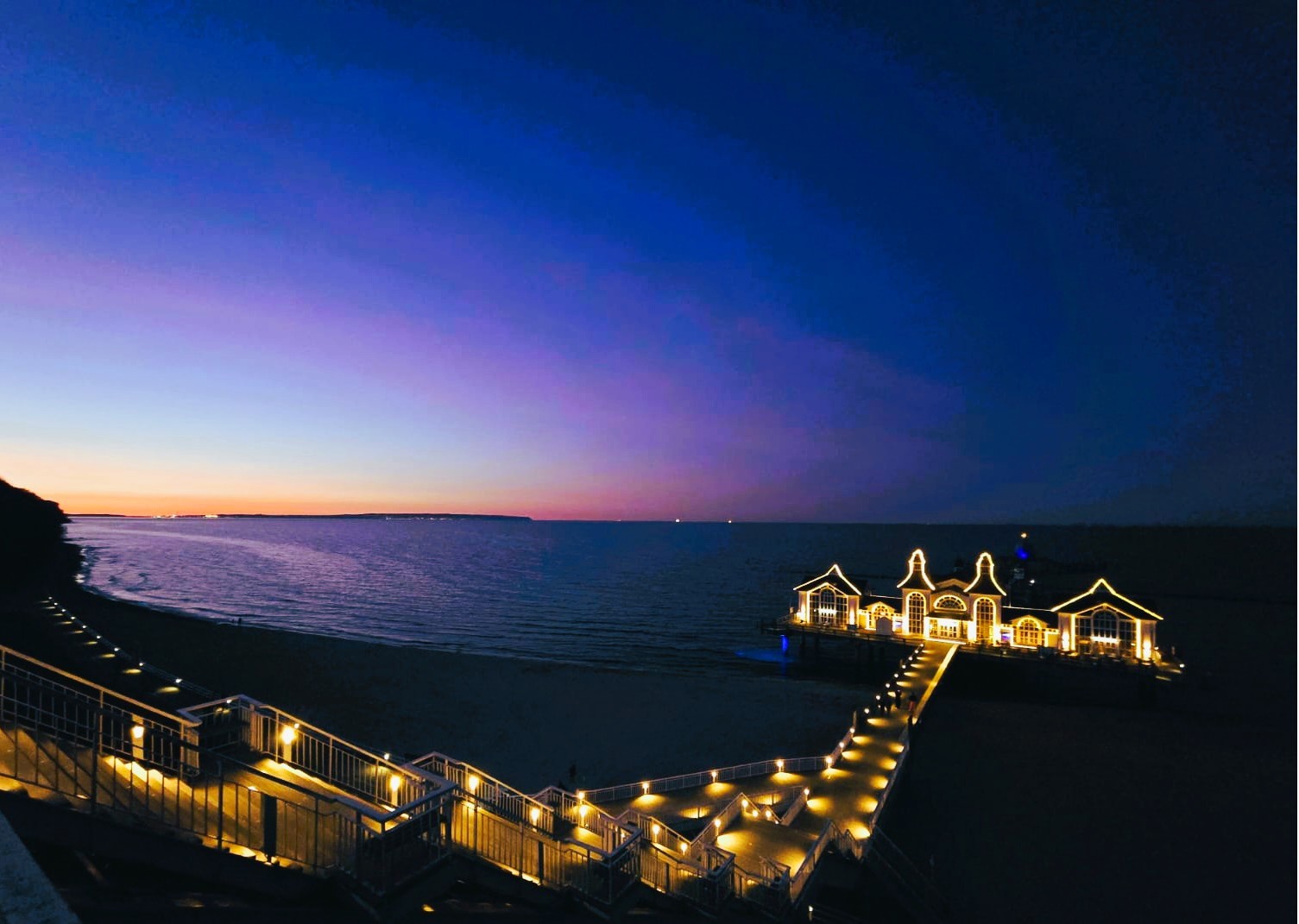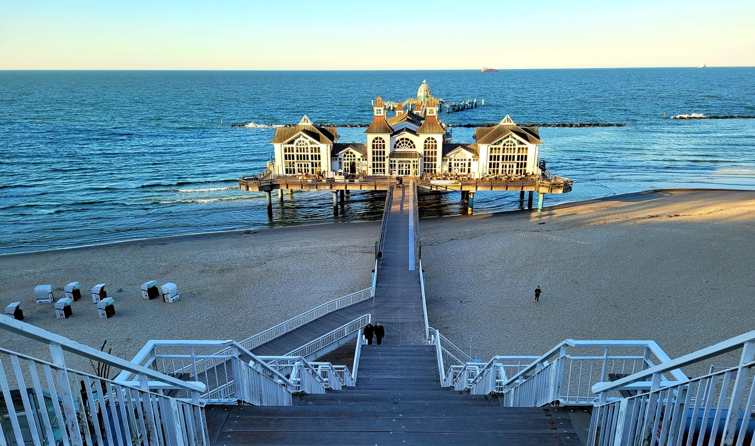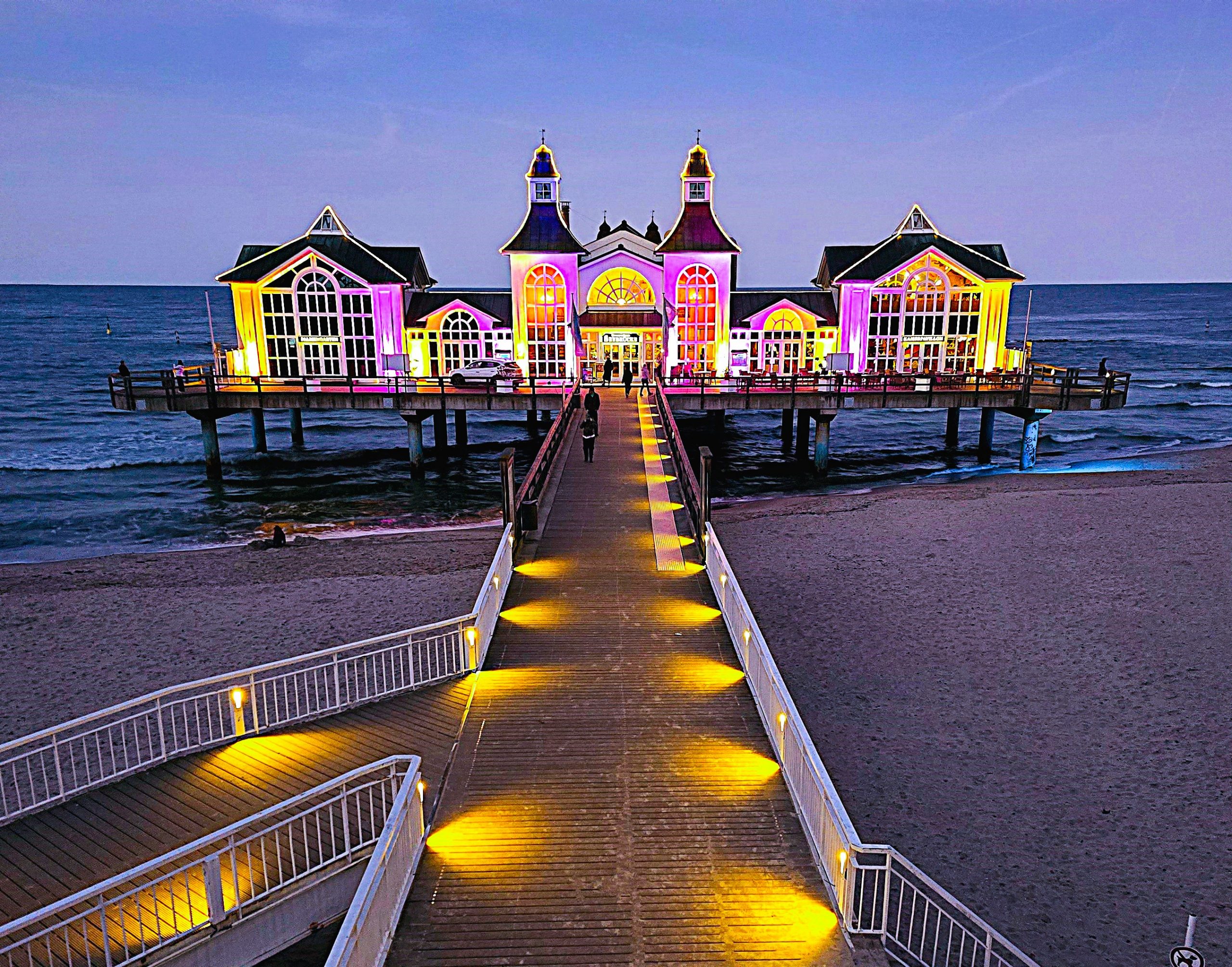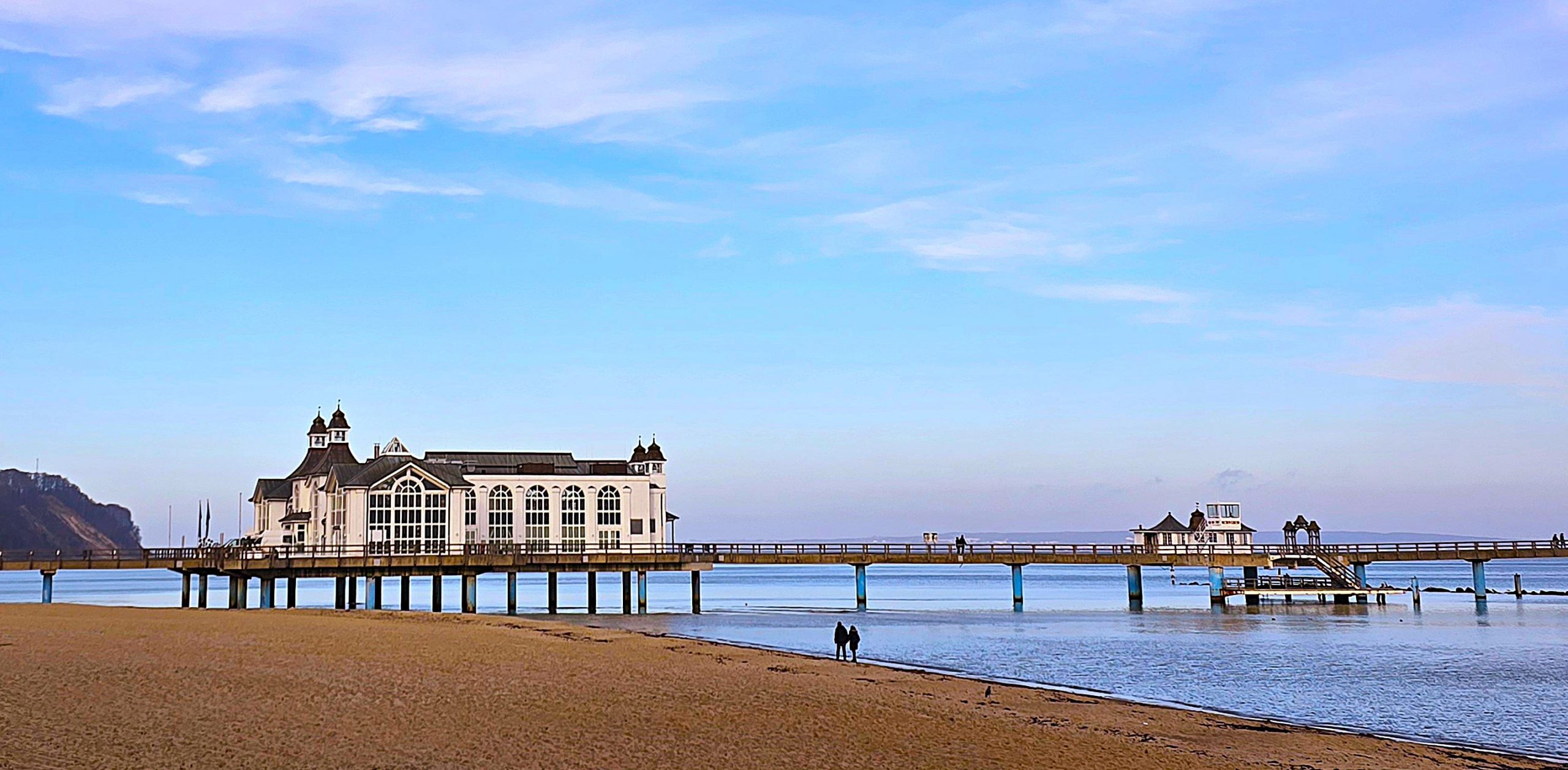 Wir besuchen charmante Seebäder mit romantischer Jahrhundertwende-Architektur, bewundern die berühmte Seebrücke von Sellin mit ihrer fotogenen Tauchglocke, erkunden magische Orte mit Steinmonumenten aus der Jungsteinzeit und genießen eine eindrucksvolle Fahrt mit der historischen Dampflokbahn, dem  „Rasenden Roland“.