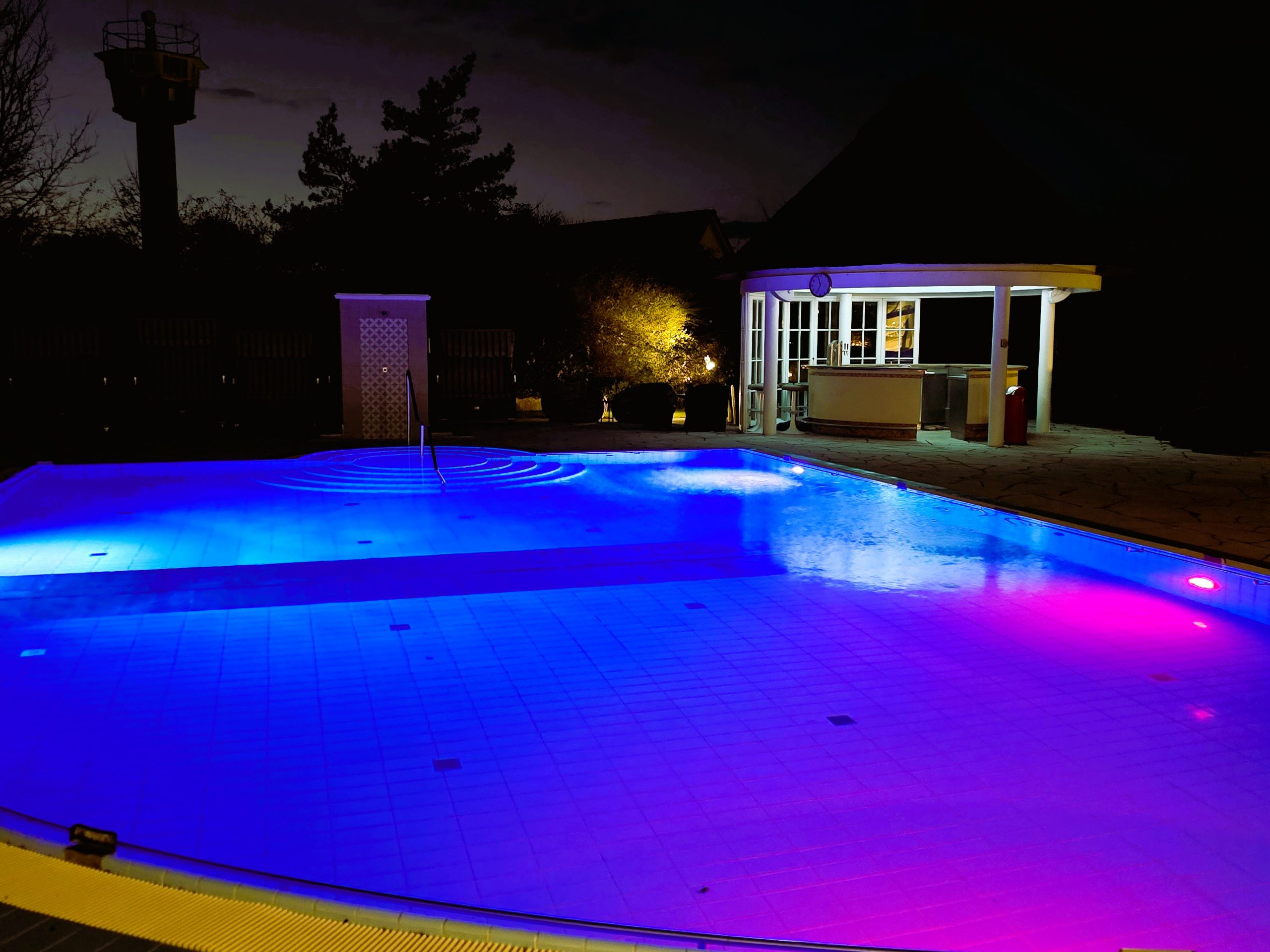 • Whirl-Pool, Innen- und Aussenpool (auch im Winter ab 07:00Uhr) mit nächtlichem Farbspiel, Gegenstromanlage