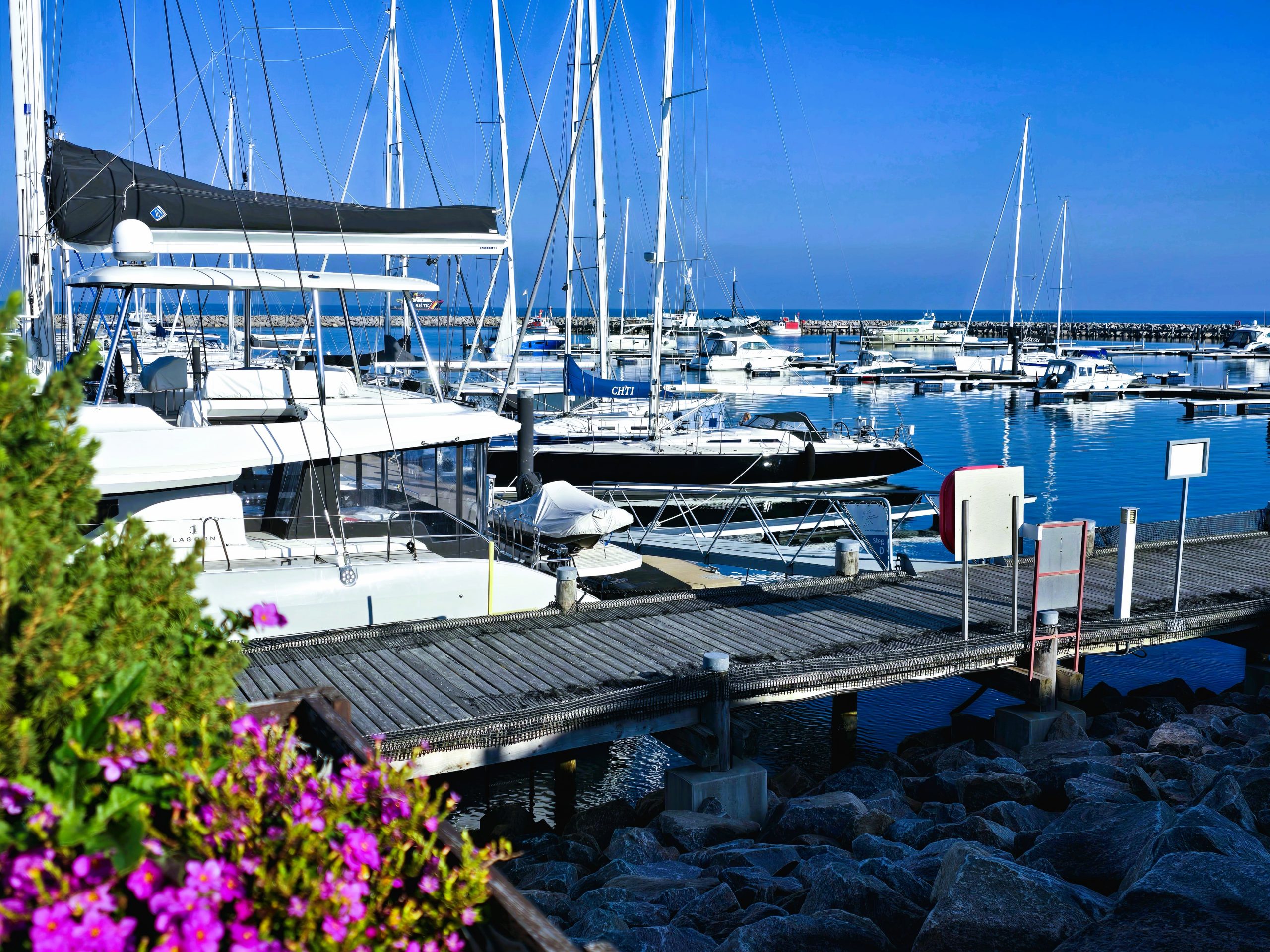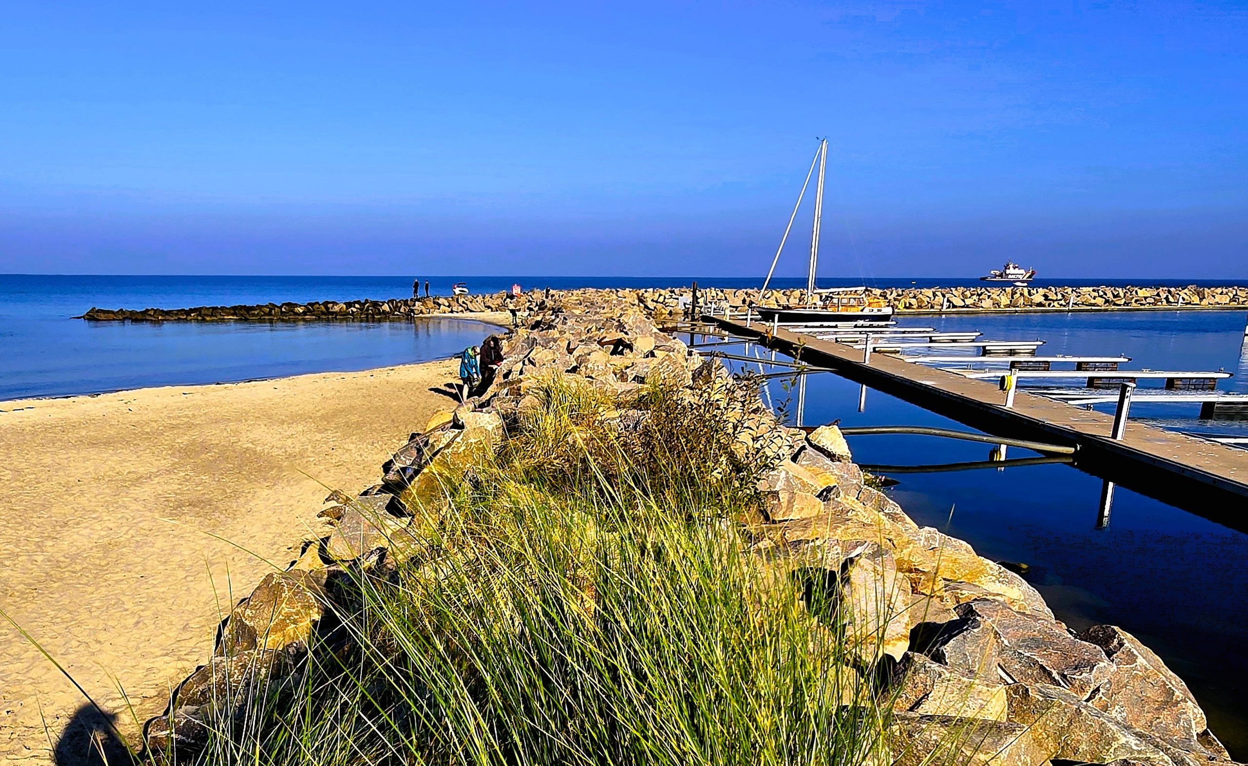 Folgen Sie der Strandpromenade und erkunden Sie den hübschen Yachthafen mit Seegelbooten, Tri- und Katamaren und an dessem Ende den Fischereihafen.