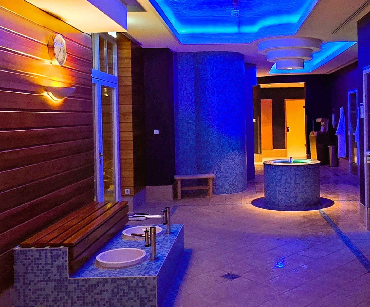 • Sechs Saunen, römisches Dampfbad, geheiztes Schwimmbad, Whirl-Pool