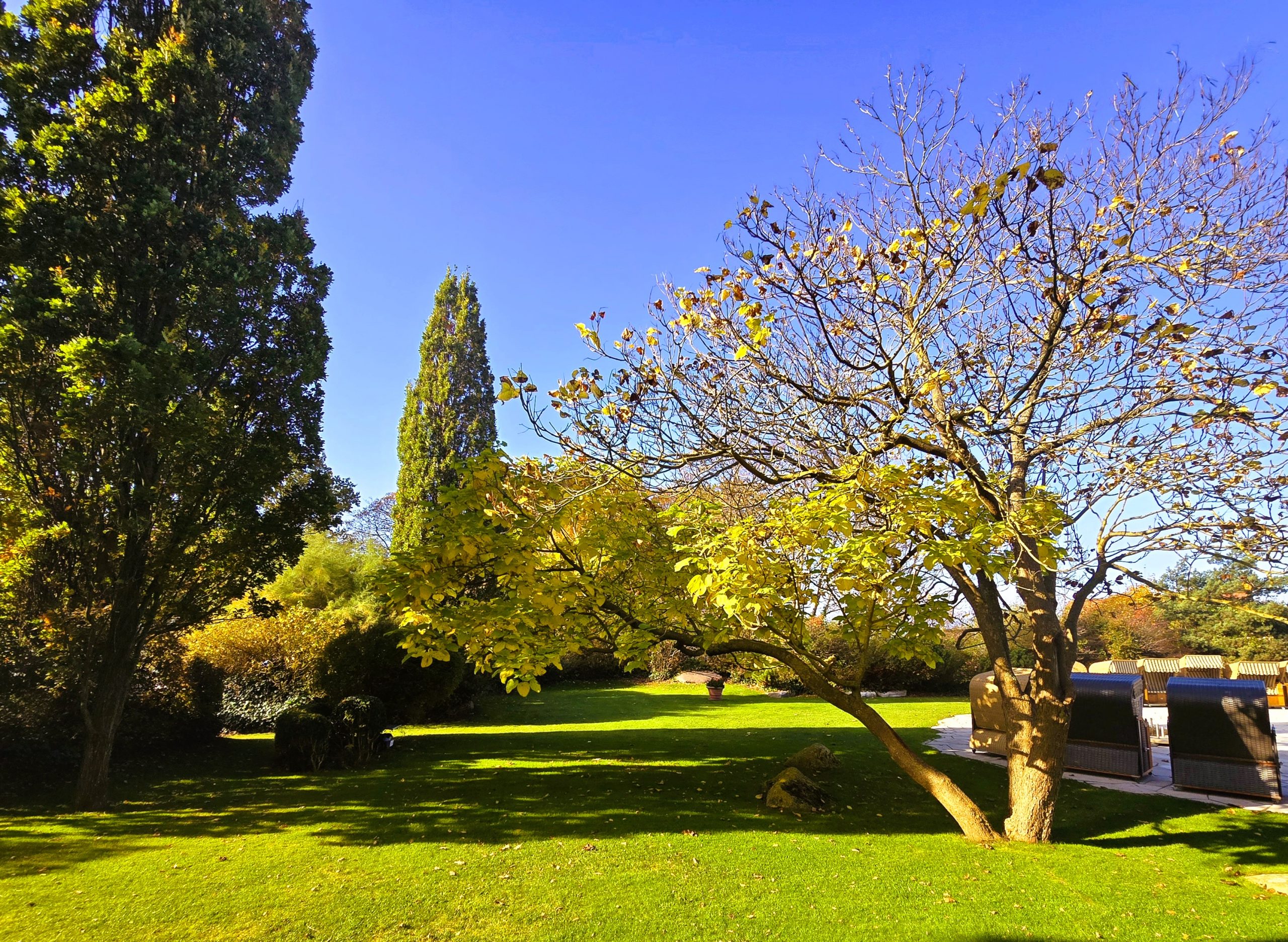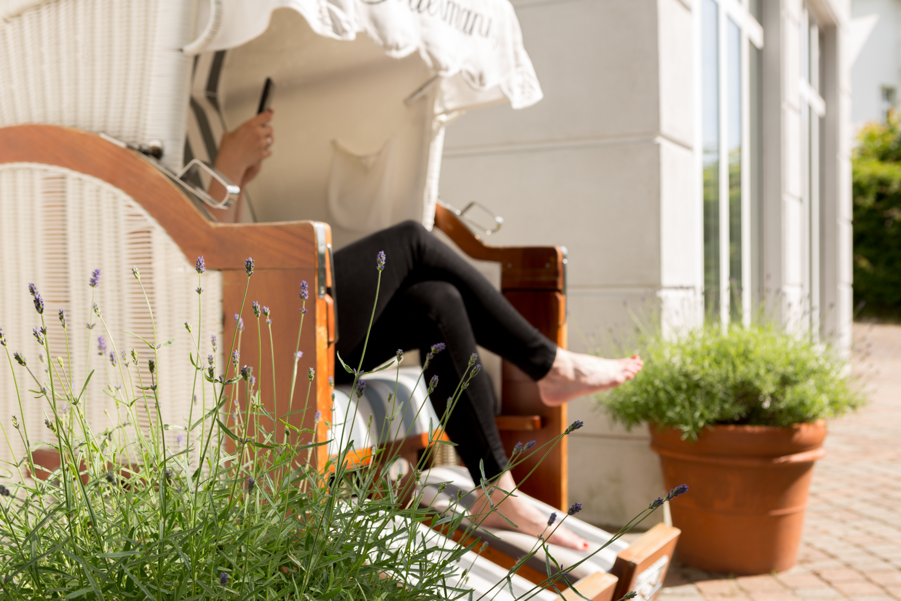 • Im schön angelegten Gartenpark können Sie  im Strandkorb  so richtig entspannen und entschleunigen!
